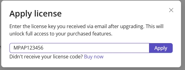Enter your license key in the input field.